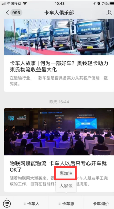 日前,卡車人[kacheren com]以“為卡車人服務”為宗指,推出了“惠加油”服務,惠加油完全共享車主邦能鏈。