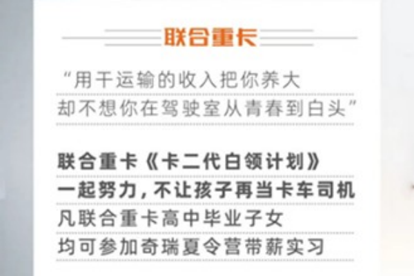 聯合重卡發出品牌強音 卡二代白領計劃正式開班!聯合重卡十年馳久名人堂宣布成立