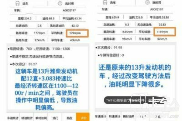 文章里所例舉各種具體數據是根據車輛配置來說明,數據并不適用所有車輛,車輛配置不同、發動機不同、數據都會存在不同差異,比方說12升的ISG發動機、13升濰柴以及13升曼技術發動機都是低轉速大扭矩類型發動機,最經濟轉速區都基本在1000―1200r / min,11升的錫柴配12超+3.7速比的領航最經濟轉速區在1200―1300r / min之間。