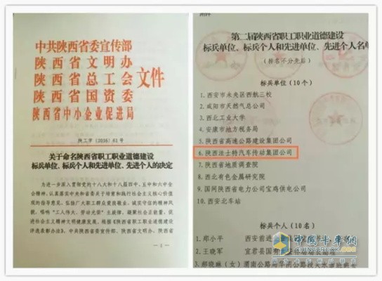 法士特獲“第二屆陜西省職工職業(yè)道德建設(shè)標(biāo)兵單位”稱號(hào)