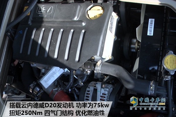動力強勁源于一顆澎湃的“芯”,這輛締途小卡采用云內德威D20發動機,輸出功率為75kw,102馬力,這樣的動力輸出對于一款小卡來說已經足夠了。