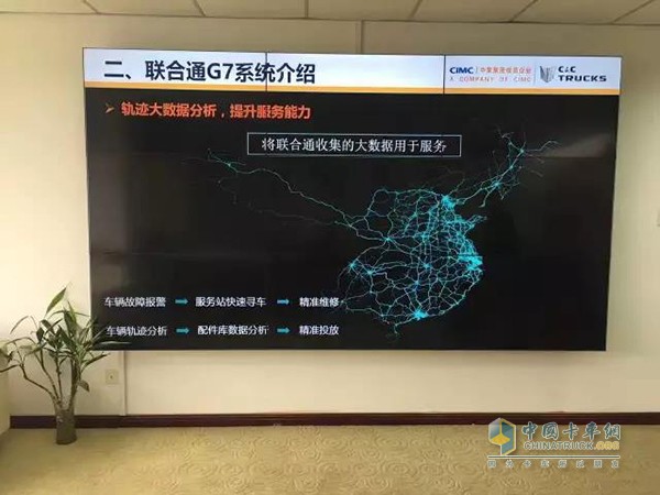 譚東介紹,目前聯合卡車會為新上牌客戶免費部署安裝聯合通G7系統、并免費培訓,并讓客戶免費使用一年。聯合通大數據中心的設立,不僅為了更好的研究聯合通G7,幫助客戶智能管車,同時也方便客戶來大數據中心觀摩學習,以及對客戶們進行專業的培訓。