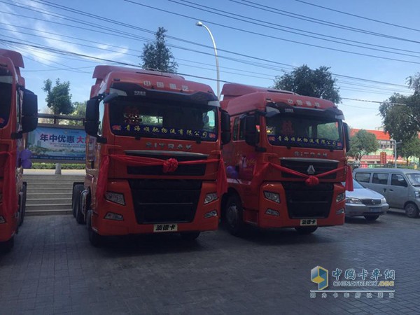 青藏大區汕德卡經銷商用卡車當婚車迎娶新娘