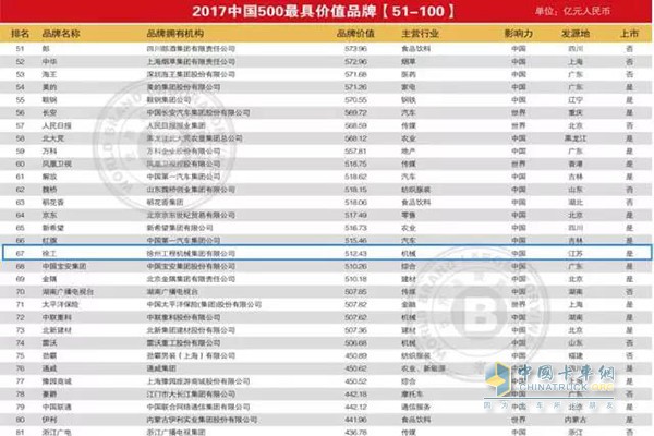 《中國500最具價值品牌》行業第一名:徐工!