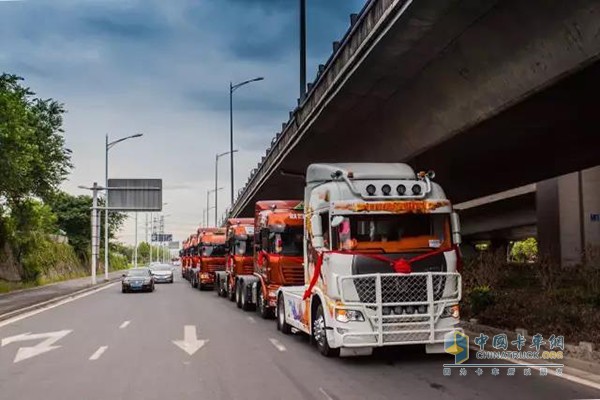 哇,原來是豪華又霸氣的重卡迎親車隊(duì)!