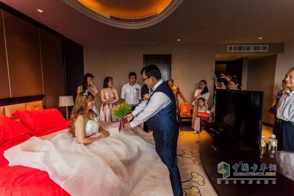 當(dāng)天的新郎官名叫卞偉翔,是滁州順君集團(tuán)的副總經(jīng)理。作為一名卡車人,他和自己的家族對(duì)聯(lián)合卡車感情較深。卞偉翔告訴我們,當(dāng)定下自己的婚期后,他決定的第一件事,就是婚禮車隊(duì)用聯(lián)合卡車來迎親,希望在自己人生最重要的時(shí)刻,讓聯(lián)合卡車作為愛的見證,同時(shí)也給媳婦一場(chǎng)與眾不同的婚禮!
