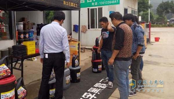 卡車司機(jī)在大理路演購(gòu)買美孚黑霸王產(chǎn)品