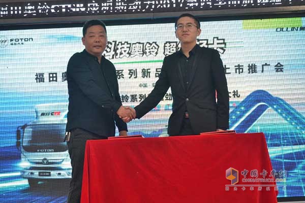 奧鈴安徽市場部經理鞠學武與蕪湖市中順汽貿有限公司總經理喻陽為奧鈴CTS超級輕卡揭幕