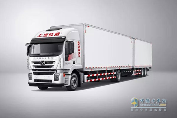 而另一款紅巖中置軸貨運列車,則是上汽紅巖積極響應國家GB1589法規對道路運輸規范化、標準化愈加嚴苛的要求,秉承歐洲先進設計理念,率先開發的國內首款中置軸貨運列車。117m³超大容積較傳統車型容積提升40%以上,可輕松分離的主掛車還能夠實現更高效的甩掛運輸。同時,獨特的依維柯專利EBS發動機缸內制動技術,加之盤式制動、ECAS電控空氣懸架等先進安全配置的應用,還能有效確保貨運列車的行車安全。這種新型的物流車輛裝備和運輸模式,或將成為未來高效物流必不可少的新寵。