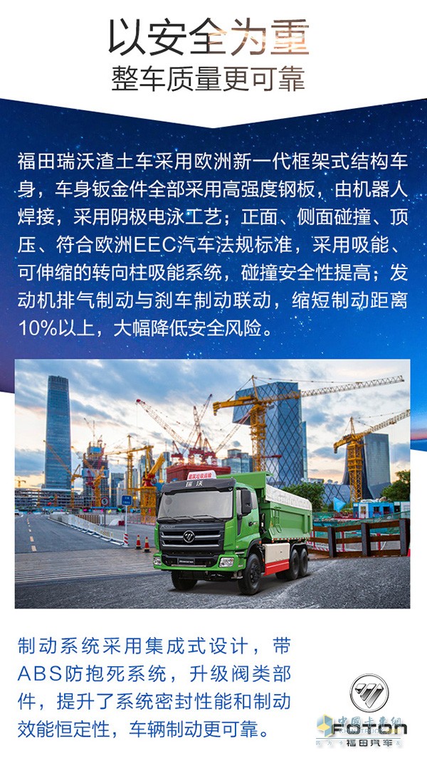 福田瑞沃響應國家政策,開發的面向城市渣土運輸、土石方剝離及砂石料運輸的高品質智能環保國五渣土車,自上市以來,用戶口碑持續攀升。
