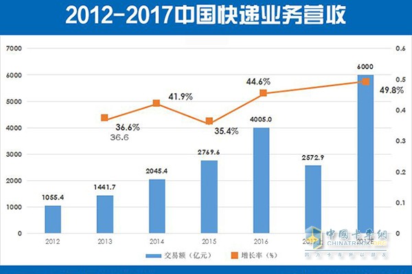 2012--2017中國快遞業務營收圖