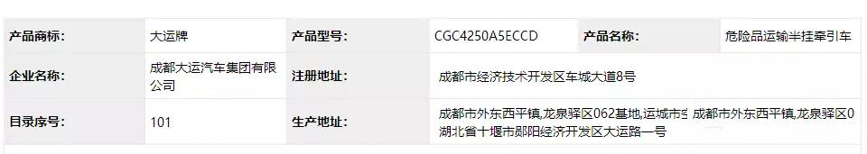 今日(2018年3月14日),工信部公示了申報(bào)道第306批《道路機(jī)動(dòng)車輛生產(chǎn)企業(yè)及產(chǎn)品公告》新產(chǎn)品,在該批眾多申報(bào)新產(chǎn)品中,有兩款產(chǎn)品引起了記者注意,該批次有兩款危險(xiǎn)品運(yùn)輸半掛牽引車產(chǎn)品申報(bào)公告,一款是大運(yùn)牌柴油危險(xiǎn)品運(yùn)輸半掛牽引車(CGC4250A5ECCD),另一款是徐工牌LNG危險(xiǎn)品運(yùn)輸半掛牽引車(XGA4259N5WC)。