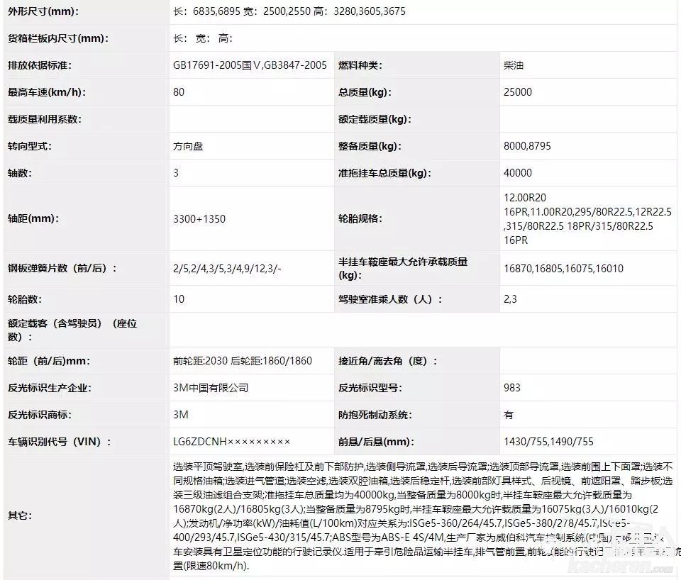 準(zhǔn)拖掛車總質(zhì)量均為40000kg。整備質(zhì)量(KG)8000\8795。當(dāng)整備質(zhì)量為8000kg時(shí),半掛車鞍座最大允許載質(zhì)量為16870kg(2人)/16805kg(3人);當(dāng)整備質(zhì)量為8795kg時(shí),半掛車鞍座最大允許載質(zhì)量為16075kg(3人)/16010kg(2人)。