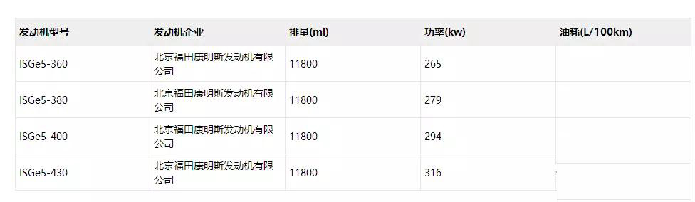 動(dòng)力方面,發(fā)動(dòng)機(jī)裝配康明斯ISGe5發(fā)動(dòng)機(jī),滿足國五排放,有四個(gè)馬力段,其分別為360、380、400、430,發(fā)動(dòng)機(jī)/凈功率(kW)/油耗值(L/100km)對(duì)應(yīng)關(guān)系為:ISGe5-360/264/45.7,ISGe5-380/278/45.7,ISGe5-400/293/45.7,ISGe5-430/315/45.7。