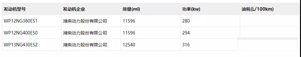 動(dòng)力方面,發(fā)動(dòng)濰柴WP12NG發(fā)動(dòng)機(jī),滿足國五排放,有3個(gè)馬力段,WP13NG430E52發(fā)動(dòng)機(jī)最大凈功率為308kw,WP12NG400E50發(fā)動(dòng)機(jī)最大凈功率為286kw,WP12NG380E51發(fā)動(dòng)機(jī)最大凈功率為272kw。