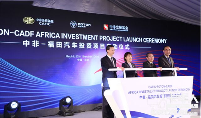 會(huì)上,在中非產(chǎn)能合作基金董事長(zhǎng)韓紅梅、中非發(fā)展基金總裁石紀(jì)楊、福田汽車集團(tuán)總經(jīng)理鞏月瓊、福田汽車集團(tuán)副總經(jīng)理、福田國(guó)際總裁常瑞的共同見證下,中非兩大基金與福田汽車非洲投資合作項(xiàng)目?jī)x式正式啟動(dòng)。