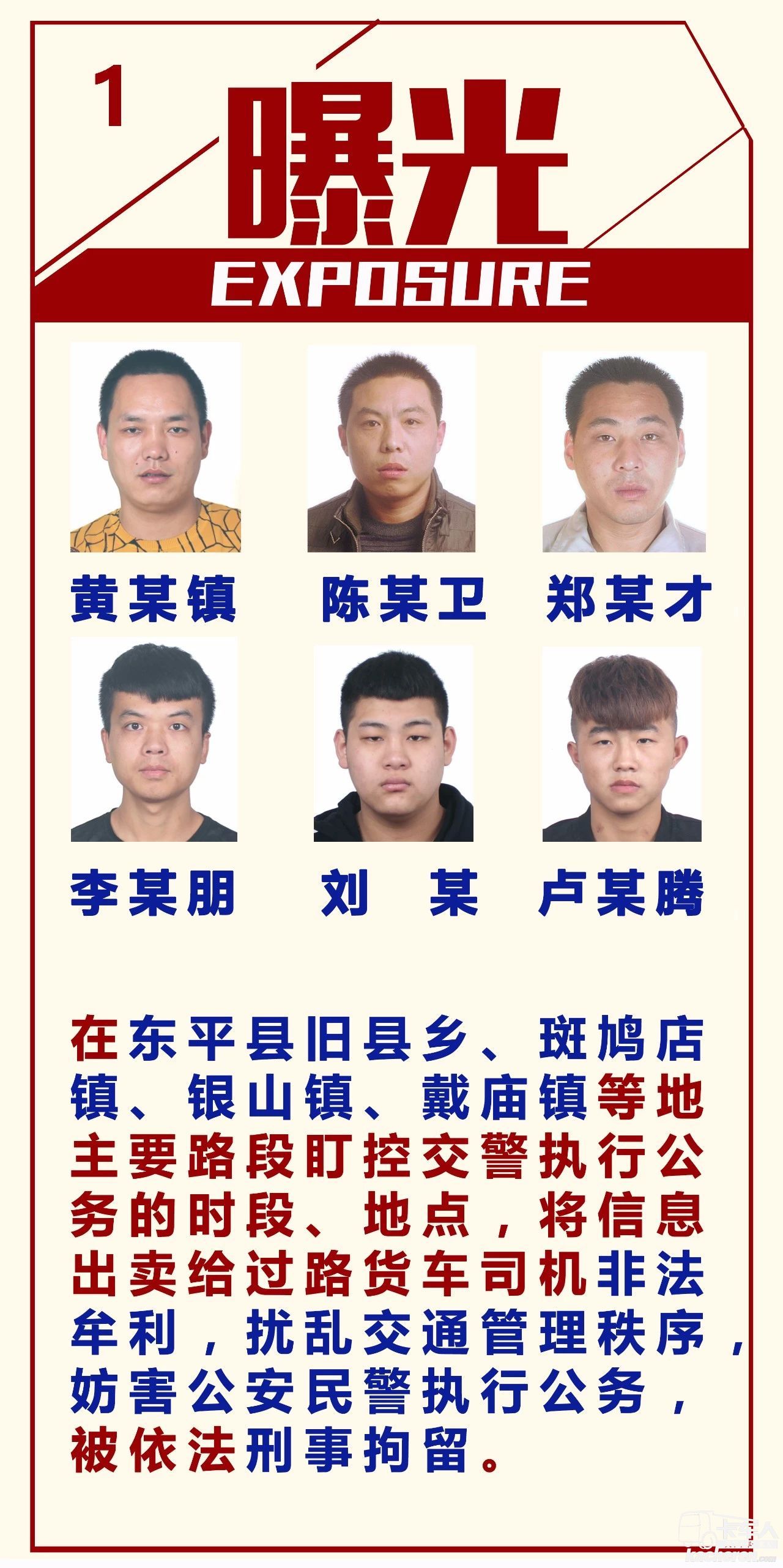 貨車超限超載危害無窮,公安機關一直依法嚴管嚴控。但有些人卻挑戰法律權威,以牟利為目的,利用地熟人熟情況熟的條件,干起了為超限超載車輛提供執法人員信息、帶車繞卡繞道躲避執法檢查的勾當,嚴重擾亂、破壞交通秩序,危害交通安全,嚴重妨礙國家機關工作人員依法執行公務。