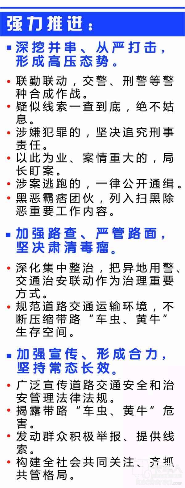 公安機關將繼續加大打擊整治超限超載貨車帶路“車蟲、黃牛”工作力度,進一步規范道路交通運輸環境,不斷壓縮帶路“車蟲、黃牛”生存空間,堅決肅清這一社會毒瘤。