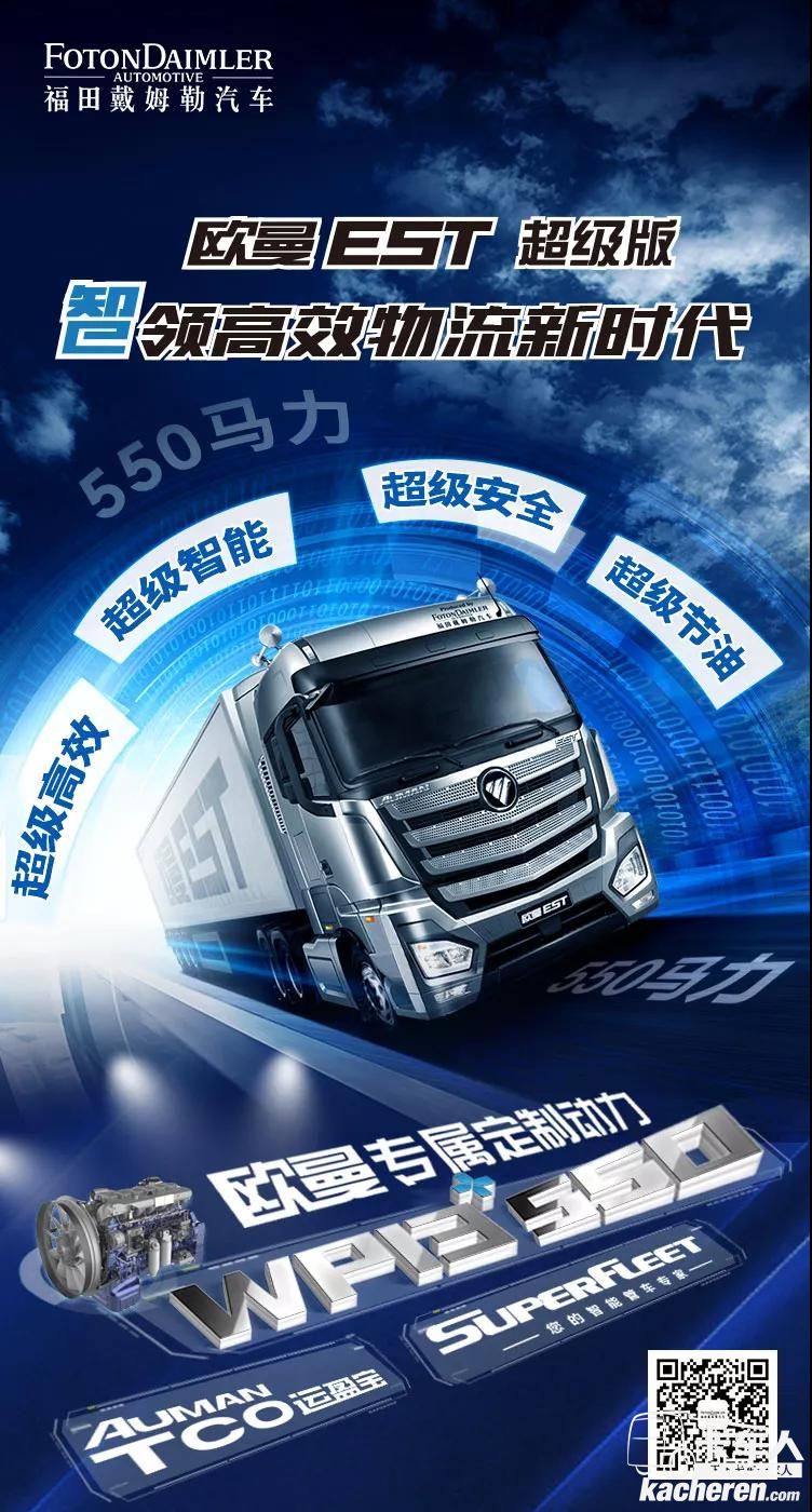 歐曼EST超級版,是福田戴姆勒汽車在超級卡車全新平臺上,鏈合超級卡車全球創新聯盟,基于60萬歐曼濰柴用戶大數據分析,針對精準高效物流運輸需求,配裝歐曼專屬定制濰柴WP13+智慧動力,按照歐洲匹配理念全新定制開發的550大馬力、高效率、超節油的中長途高效物流標載運輸車,具有超級高效、超級節油、超級智能、超級安全、超級舒適等超級功能。