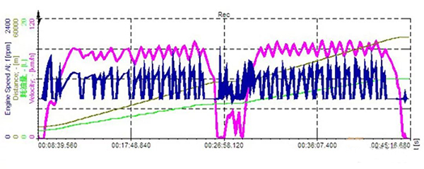 不同駕駛員駕駛相同線路的速度曲線和燃料消耗表。其中A駕駛員操作時平均百公里氣耗為26.13KG/100km,而B駕駛員操作時平均百公里氣耗達到了21.67KG/100km,差距更加明顯。因此,在駕駛操作過程中要注意提前處理情況,增加對道路情況變化的預判,不僅是行車安全的有效保證,同時也能大幅度的降低燃料消耗。