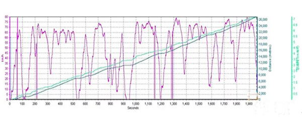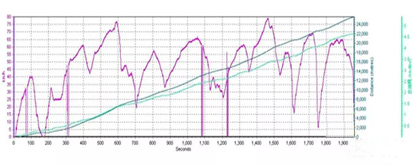 下面A、B均為同一輛車,不同駕駛員駕駛相同線路的速度曲線和燃料消耗表。其中A的駕駛員操作時平均百公里氣耗為17.33KG/100km,而B的駕駛員操作時平均百公里氣耗達到了19.22KG/100km,差距十分明顯。因此,在駕駛操作過程中要注意避免急加速、急減速,盡量保持勻速行駛。