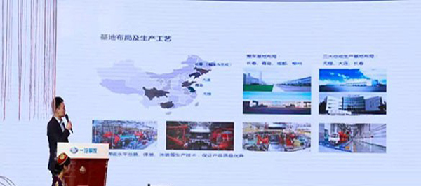 隨后,產(chǎn)品講師劉春林先生登臺進行產(chǎn)品講解,認真細致的對車輛的外觀、智能、動力、節(jié)能等方面進行了詳細解讀。充分表現(xiàn)了一汽解放J6P 6x4牽引車產(chǎn)品貼近市場、以用戶價值為核心的設計理念。