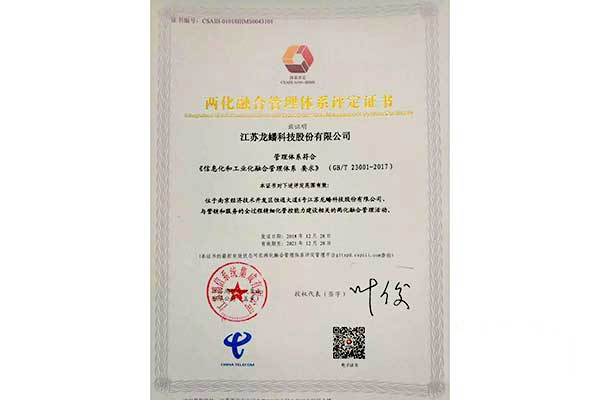 龍蟠科技于2017 年初正式啟動兩化融合管理體系貫標工作,在一年多的管理體系建設中,龍蟠科技嚴格按照《信息化和工業化融合要求》及《信息化與工業化融合管理體系評定管理辦法》要求,成立了由總經理親自掛帥總指揮的專項小組,并由副總經理擔任管理者代表統籌貫標全過程的工作。經過管理評審、國家評審、工信部兩化融合專家委員會復核和公示等環節,2018年12月28日,龍蟠科技通過了國家兩化融合管理體系認定。