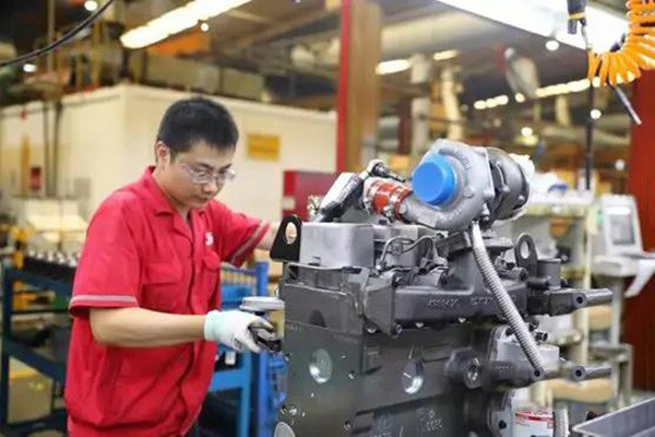 工作人員對(duì)東風(fēng)康明斯發(fā)動(dòng)機(jī)做調(diào)整