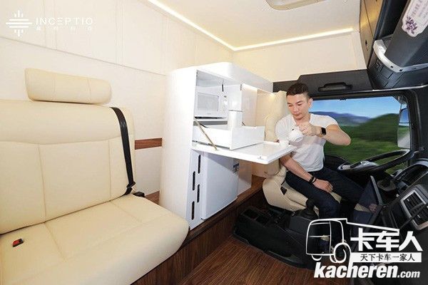 同時,對比之前的自動駕駛演示車輛, 嬴徹1號的駕駛室是最接近終端用戶需求的,創新的茶座、按摩座椅都符合智能駕駛狀態下,駕乘人員的場景需求,給專業駕駛帶來深刻變革。