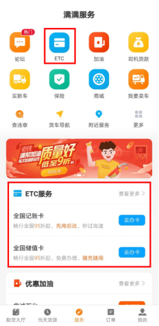 ETC記賬卡類似信用卡,先通行后付費,配合OBU使用,全國過路費享受不少于9.5折的優惠,有日結、周結、月結等不同的賬期。有了記賬卡,司機不用再擔心過路費問題,通行高速后,到賬期結算日,會主動從簽約賬戶中扣費。記賬卡日結通常不涉及服務費,但周結、月結會涉及部分服務費。沒有辦理過ETC卡的,可直接辦理記賬卡。目前,滿幫記賬卡日結無服務費;周結10元/周/車,不限使用金額,不使用則無服務費;月結收取通行費1%服務費,費率居行業低水平。