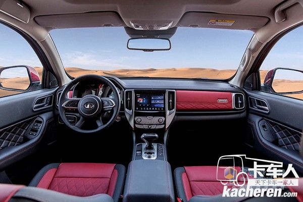 內飾方面,長城炮越野皮卡具有和乘用皮卡同樣的舒適性配置,無鑰匙進入+一鍵啟動、多功能真皮方向盤配備換擋撥片、9英寸觸摸屏、真皮座椅、自動空調、后排空調出風口、可開啟天窗等乘用化配置一應俱全。