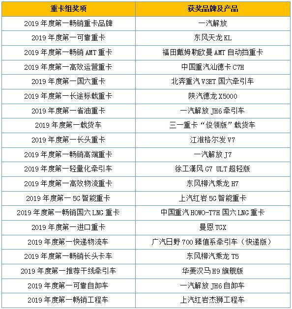 重卡組獲獎品牌及產(chǎn)品