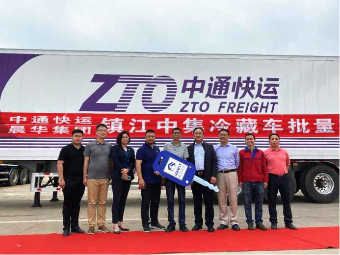 2020年5月8日,青島中集冷藏運(yùn)輸設(shè)備有限公司鎮(zhèn)江分公司舉辦中通快運(yùn)交車儀式。中集車輛助理總裁翟敬雄親手將“青鋒冷”冷藏車產(chǎn)品鑰匙交給中通快運(yùn)運(yùn)營總監(jiān)章永明,此舉標(biāo)志中集車輛與中通快運(yùn)合作邁入新階段,將有力推動(dòng)國內(nèi)陸運(yùn)冷藏運(yùn)輸裝備市場的健康發(fā)展。