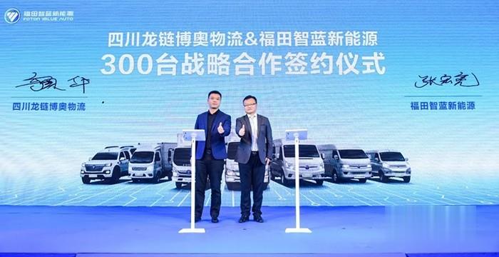 憑借場景定制化研發、豐富產品組合、不斷升級的服務體系,為廣大物流用戶提供體系化解決方案,福田智藍新能源在成都上市即熱銷。活動現場,福田智藍新能源不僅向華藥物流、藥易達物流、騰林醫藥物流現場交付輕卡產品,更與等當地知名新能源物流公司四川龍鏈博奧物流達成300臺戰略合作簽約,共推福田智藍在新能源成都城配市場的深入發展。