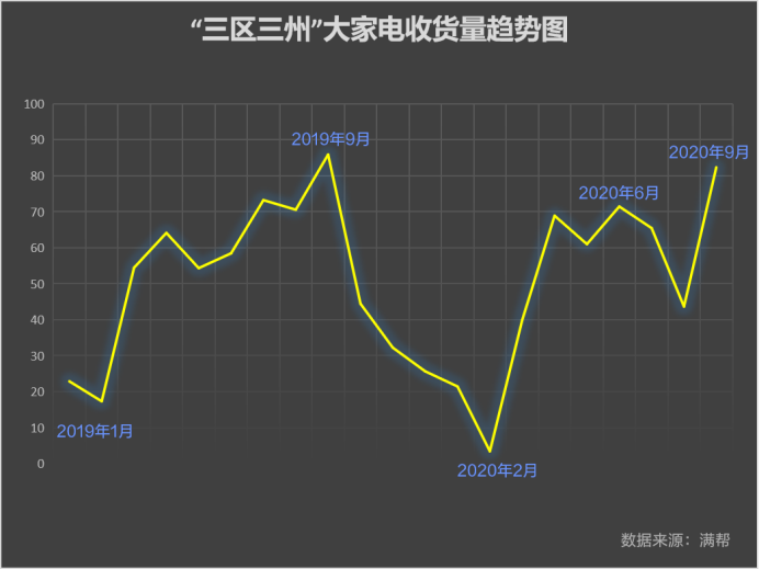 收入高了,通上電了,大家電搞起來。“三區三州”近兩年大家電的收貨量穩定。雖經歷了疫情,今年1到9月的收貨量仍達去年同期的83%。“三區三州”地區,大家電收貨量前5的城市地區分別為喀什、阿克蘇、和田、甘孜和拉薩。往該地區運家電的城市地區分別為烏魯木齊、阿克蘇、成都、喀什和廣州。