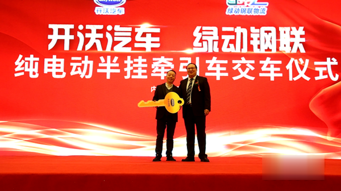 開(kāi)沃?jǐn)y手綠動(dòng)鋼聯(lián)舉行純電動(dòng)半掛牽引車交車儀式