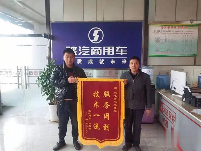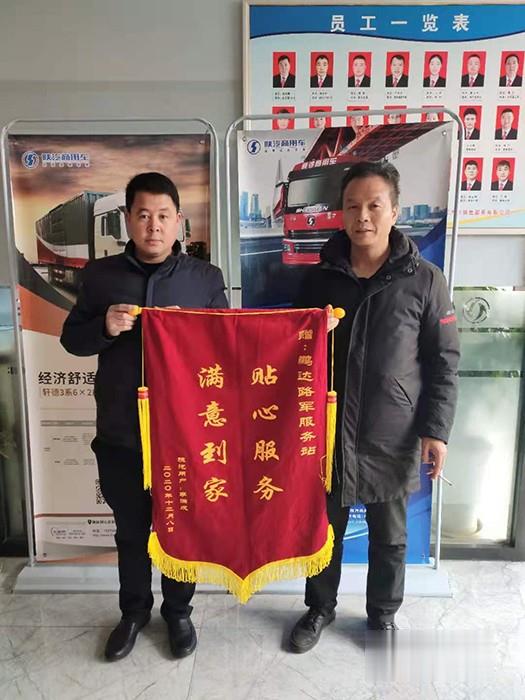 內外部服務人員的高效協同,有效的解決了車輛問題,保障了客戶車輛的正常運營。錦旗上“急客戶之所急想客戶之所想”的大字閃閃發光,代表著客戶激動的感謝之情和對陜汽商用車服務的認可。