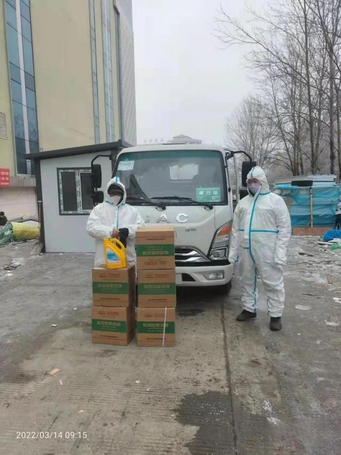 由于當地疫情情況比較緊張,車輛處于高效運行的狀態,車用尿素缺乏。3月13日,服務站又送去多箱尿素和防凍液,表示對在防疫一線工作者的支持。