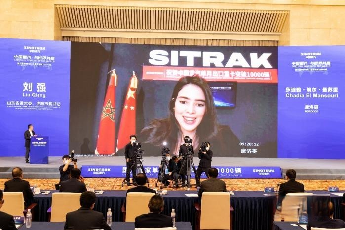 當天,“中國重汽 與世界共贏——國內首家單月出口重卡突破10000輛 ”活動在濟南舉辦。山東省委常委、濟南市委書記劉強,濟南市委副書記、市長于海田,山東重工集團黨委書記、董事長,中國重汽集團黨委書記、董事長譚旭光,山東省、濟南市相關部門領導參加活動。全球100多個國家、310多家經銷商、客戶代表線上參加。