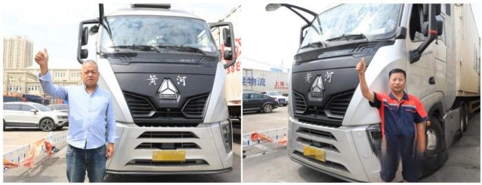 潘漢橋(左)和潘倫健(右)兩位師傅點贊黃河X7重卡
