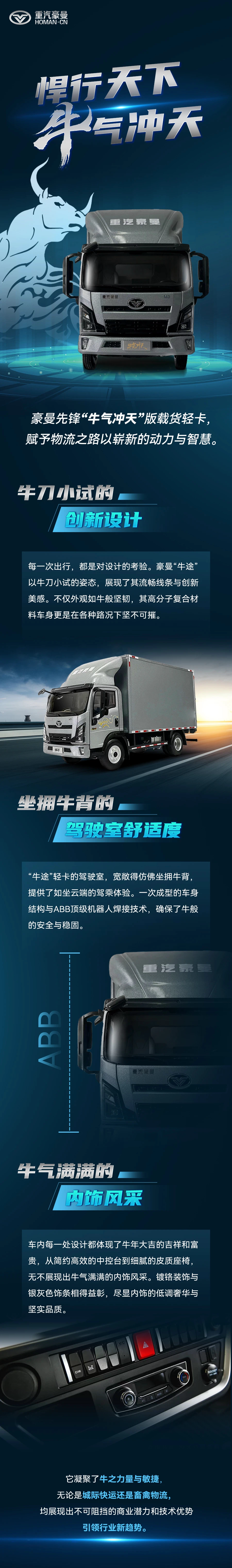 豪曼先鋒“牛氣沖天”版載貨輕卡,賦予物流之路以嶄新的動力與智慧。