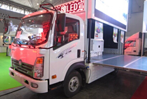 重汽王牌LED宣傳車是全場為數不多的以移動廣告車為宣傳主題的展商。重汽王牌LED宣傳車以“低投入,高回報,見效快,易操作”的賣點和高性能,高技...