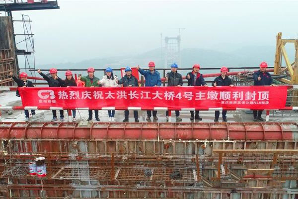 重慶:南兩高速太洪長江大橋南岸主塔順利封頂