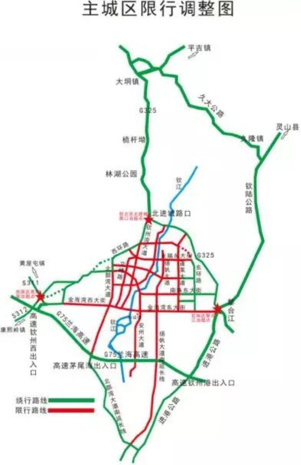 其中欽州灣大道路段坭橋路口北至汽車北站路口、西環北路、國道G325線不限行。