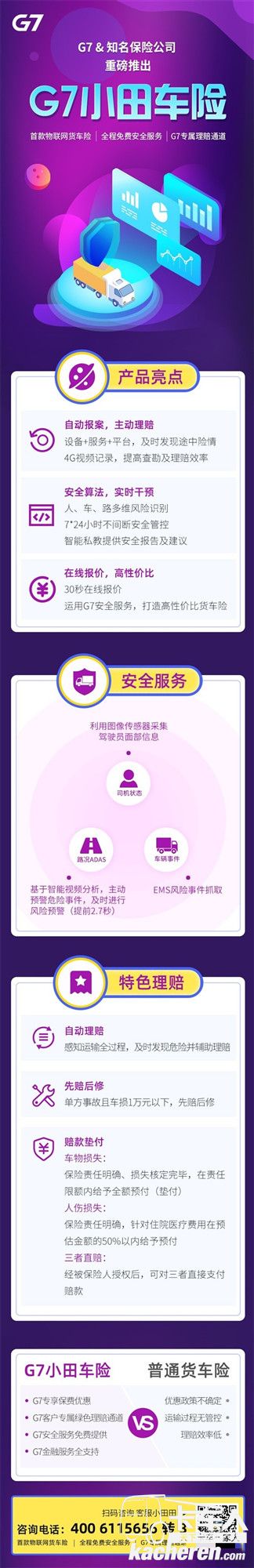 G7首款物聯網貨車險重磅發布!“物聯網+保險”打造貨車險新品類。自動報案,主動理賠、安全算法,實時干預,在線報價,高性價比。