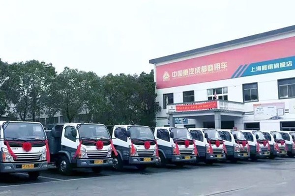 2021年12月14日,重汽王牌輕卡自卸客戶交車儀式在上海浦東成功舉辦,首批14臺地庫小自卸車型在這里整裝待發,成功交付。