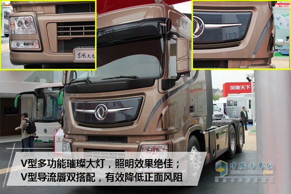 追求大馬力的卡友們,東風天龍旗艦絕對是你的菜,當然,高端重卡的背后不單單只有大馬力才能夠,一副亮眼的“面孔”也是不可或缺的,天龍旗艦整車外觀沿用歐洲重卡造型設計,“V”造型設計高端大氣。