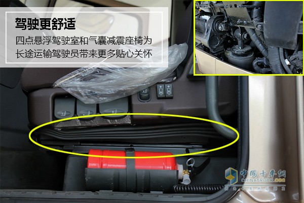駕駛室采用四點懸浮設計,并配備氣囊減震座椅,對于跑長途干線的冷鏈運輸從事者,能夠有效減輕駕駛員在高效長途運輸過程中產生的疲勞。