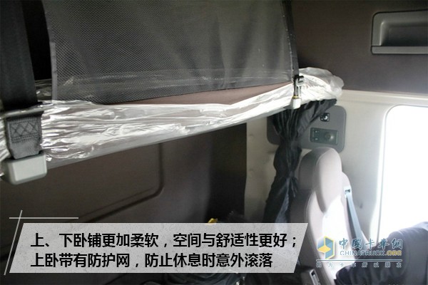 天龍旗艦全新駕駛室的大空間、平地板、超寬臥鋪設計為駕駛員帶來前所未有的寬適空間感受,讓駕駛室變得井井有條。超大的駕駛空間、豐富的人性化設計、轎車般的駕乘體驗,可以說重新定義了卡車的舒適性,成為行業標桿。