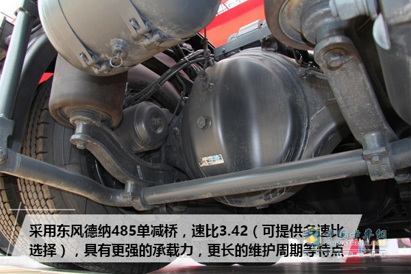 選用德國采埃孚的ZF ASTronic2540(AMT)變速箱,擁有低運營成本、高可靠性、高安全性以及操控舒適性等特點。AMT變速箱可以有效減少離合器磨損,降低運營成本,減少燃油消耗。后橋采用東風自主的德納車橋,擁有更強的承載能力和耐沖擊能力,更便捷的維護和更換設計以及更長的維護間隔里程。